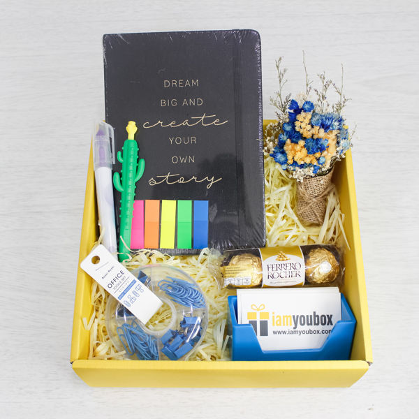 การเริ่มงานใหม่อาจเป็นเรื่องที่ตื่นเต้น หรือแม้แต่เป็นกังวลและประหม่าในบางครั้ง สิ่งนี้ทำให้เราจัดทำกล่องของขวัญนี้ขึ้น เพื่อทำให้เพื่อนร่วมงานใหม่ของคุณรู้สึกเป็นกันเองและรับรู้ถึงการต้อนรับจากคุณด้วยของที่เราจัดเตรียมไว้ให้แล้ว อย่างของที่ต้องใช้ในการทำงานในการตกแต่งโต๊ะ พร้อมกับแก้วกาแฟส่วนตัวพร้อมชงร่วมกับชาที่เตรียมไว้ให้ และที่ขาดไม่ได้คือช็อคโกแลต  เติมความหวานก่อนเริ่มทำงาน หรือระหว่างวันก็ยังได้